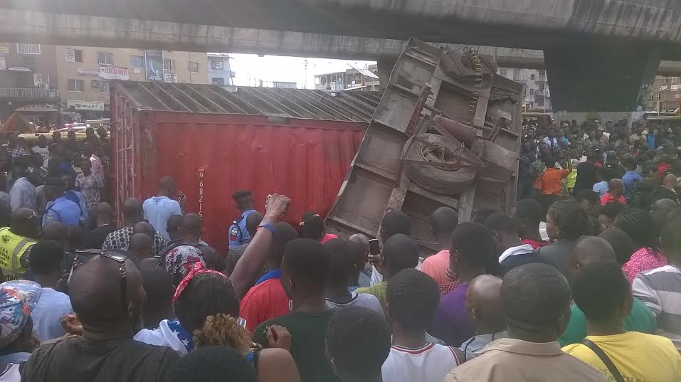 Many feared dead after trailer skids off Ojuelegba bridge and lands on cars